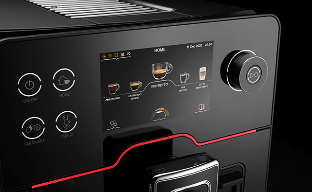 エレガントで印象的、高い信頼性。GAGGIA アカデミアは100%イタリアで設計・製造され、ステンレスやZAMA、ブラックミラーガラスなど高品質な素材を使用しています。印象的なレッドラインやロータリーノブの上質な質感など、プレミアムなディティールも魅力です。また、多機能でありながら理想的なサイズ感を実現しました。