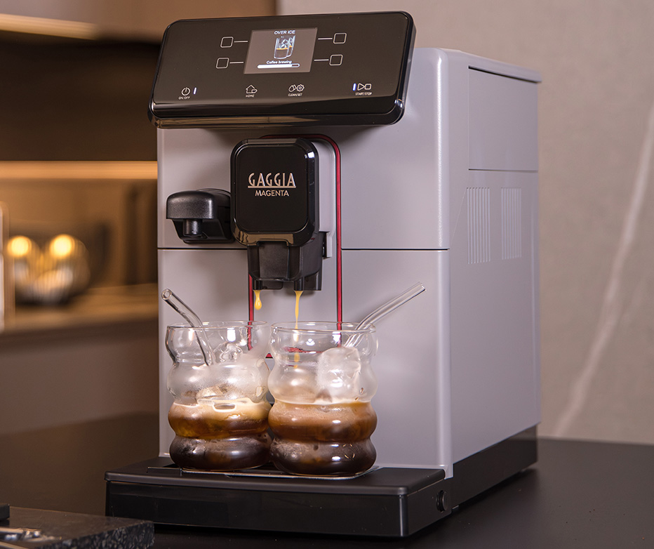 新メニュー OVER ICE !低温でじっくり時間をかけて抽出したコーヒー。たっぷりの氷を入れてすっきり滑らか、ふんわり甘い味わい。よりコーヒーの風味を味わいたい方には通常の2倍のコーヒー豆を使用するブースト機能も追加